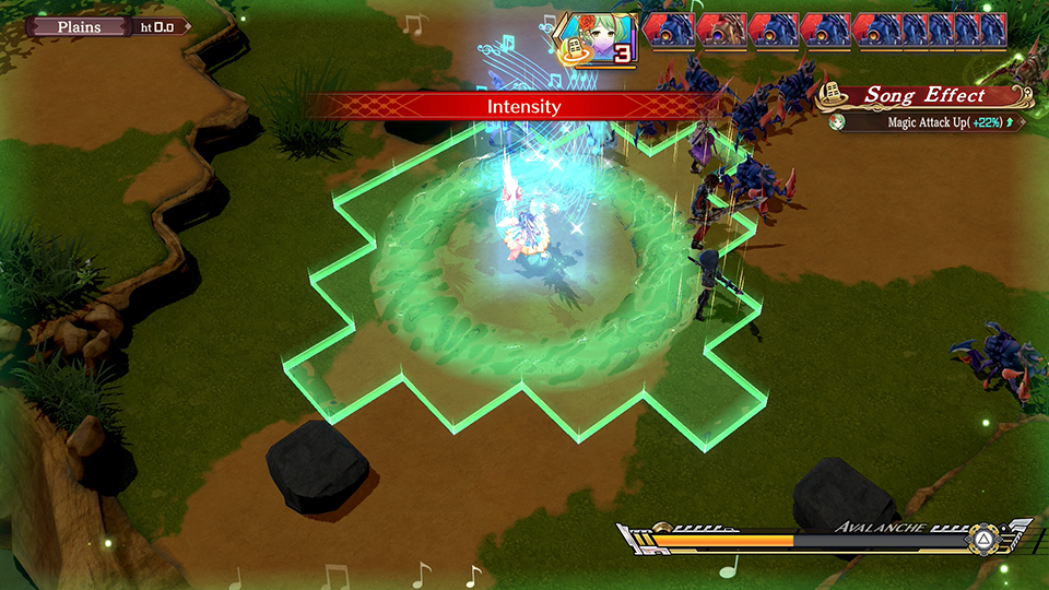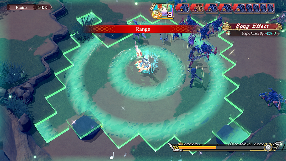 A Song Skill that is exclusive to the Muse Fleur. It's possible to select and activate several songs with different effects, and the strengthening effect is given to all ally units within range! Because the effect will disappear if outside of the range, the positioning of Fleur and ally units becomes an important point.