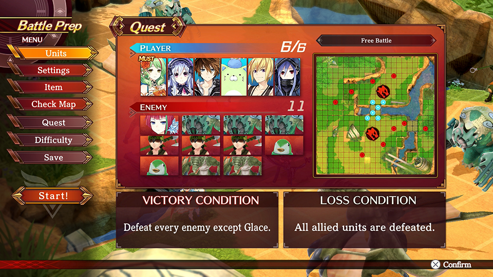 Change your party's organization, character placements, and their equipment. You can have a total of 6 units, so check all the enemy types and locations on the map, then deploy the most optimal units!