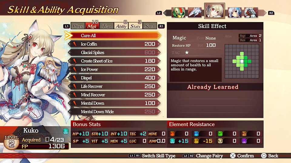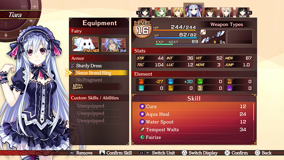 Also, Sub-Fairies can gain Custom Skills and Custom Abilities, which are able to be used even when said Fairy isn't equipped.
