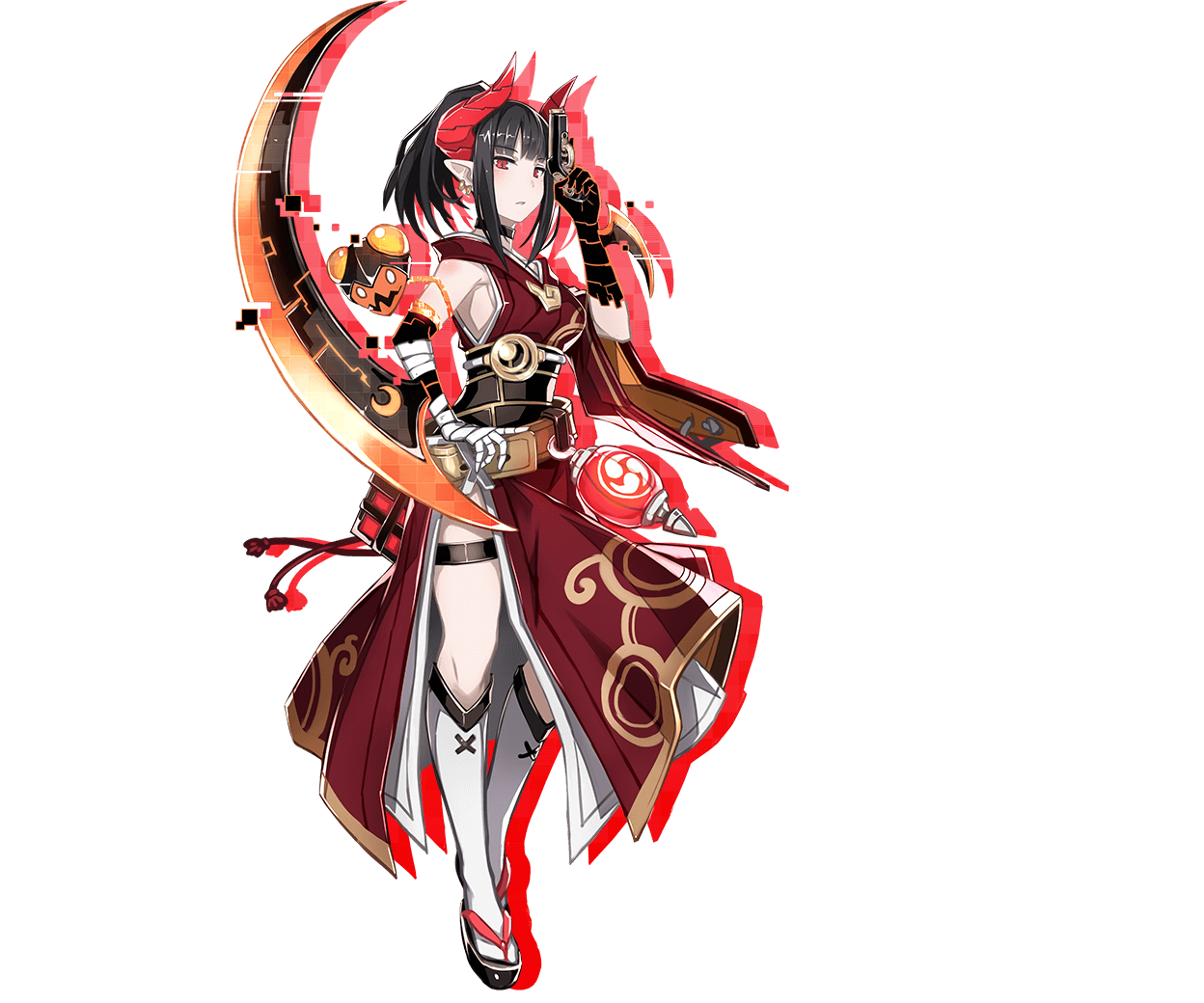 The infamous Red Peddler, who is introduced as a dubious merchant before joining Shina's party. Her obsession with flipping antique goods often gets her into trouble, but she has a keen knowledge for priceless goods and weapons. Despite her rapacious veneer, she makes for a reliable ally.