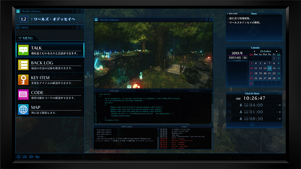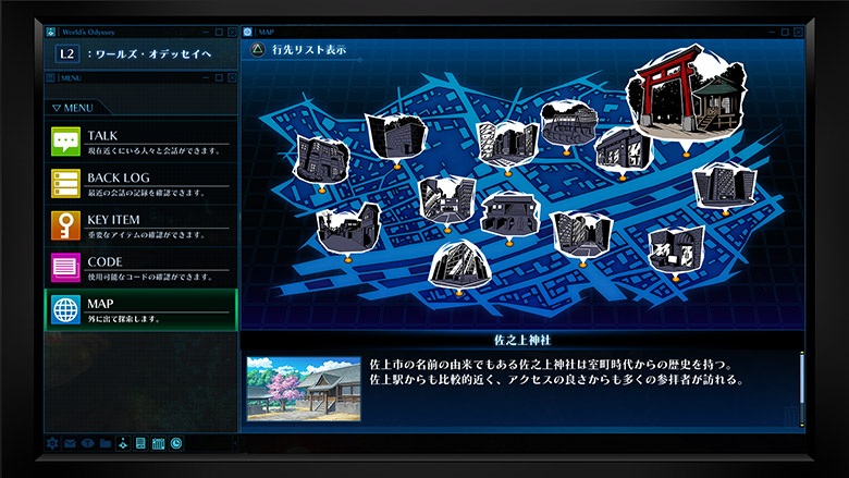While exploring the World's Odyssey, you are able to switch over to view the Real World as well. Access the PC-like UI to navigate the menu and switch over to Arata's view from the Real World. Visit the real world to uncover mysteries occuring within World's Odyssey. Most of the story's events take place in Sagami City, the stage of Arata's narrative.