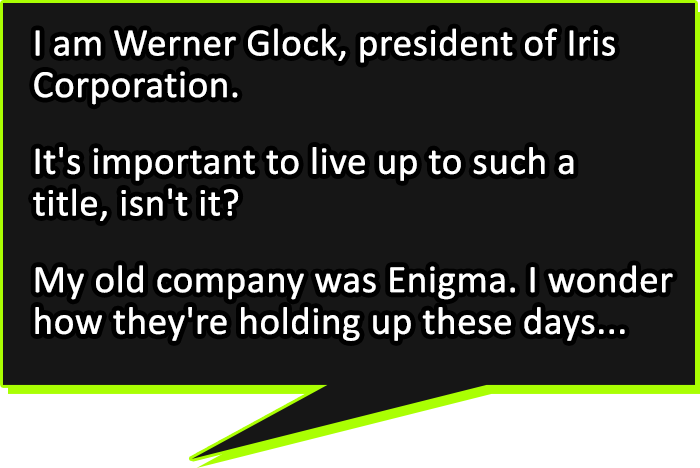 The easygoing president of Iris Corporation. Like many others, he transferred from Enigma Corporation.