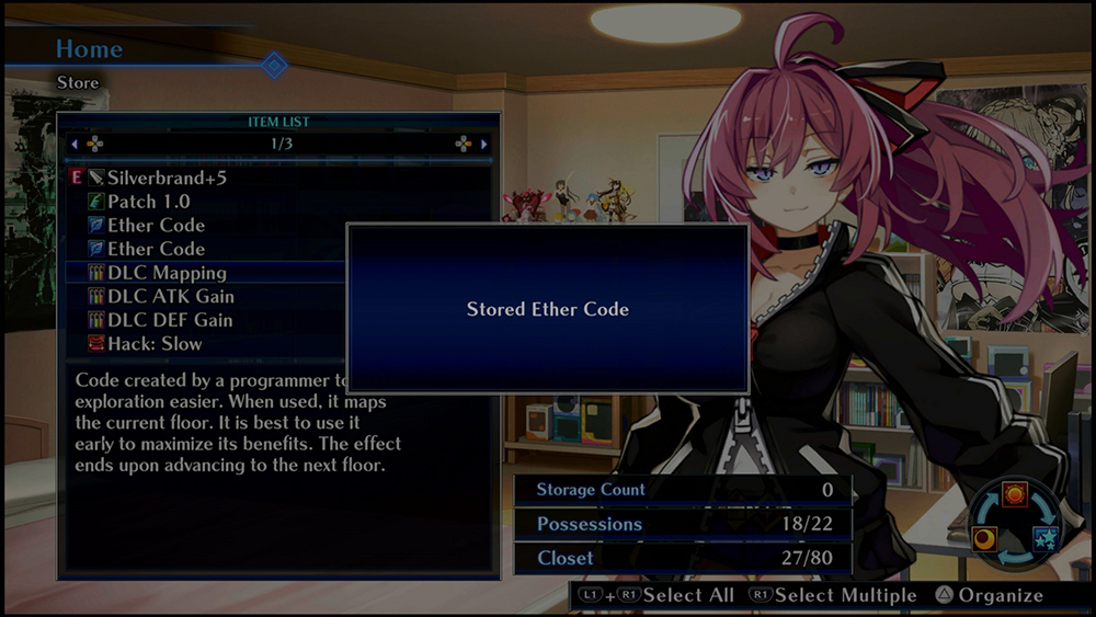 In her shared home with Shina, Sayaka can prepare for her next dungeon run.