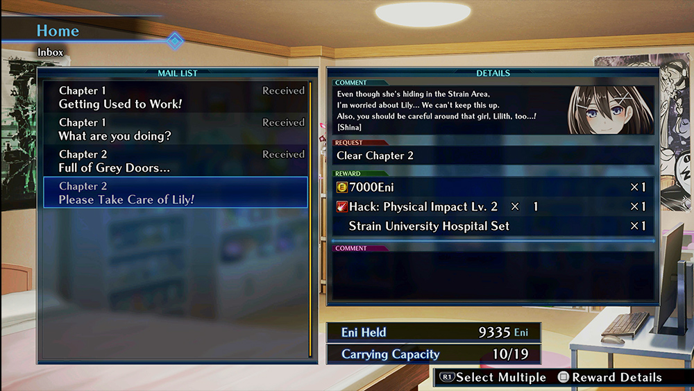 As the story progresses, you'll receive quest emails from various characters. Clear the conditions to earn rewards.