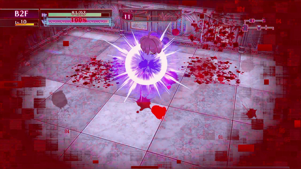 Displayed alongside a heartbeat monitor at the top of the screen, sanity starts at 100% when entering a dungeon, but gradually declines with each step. Some traps can also lower sanity.
