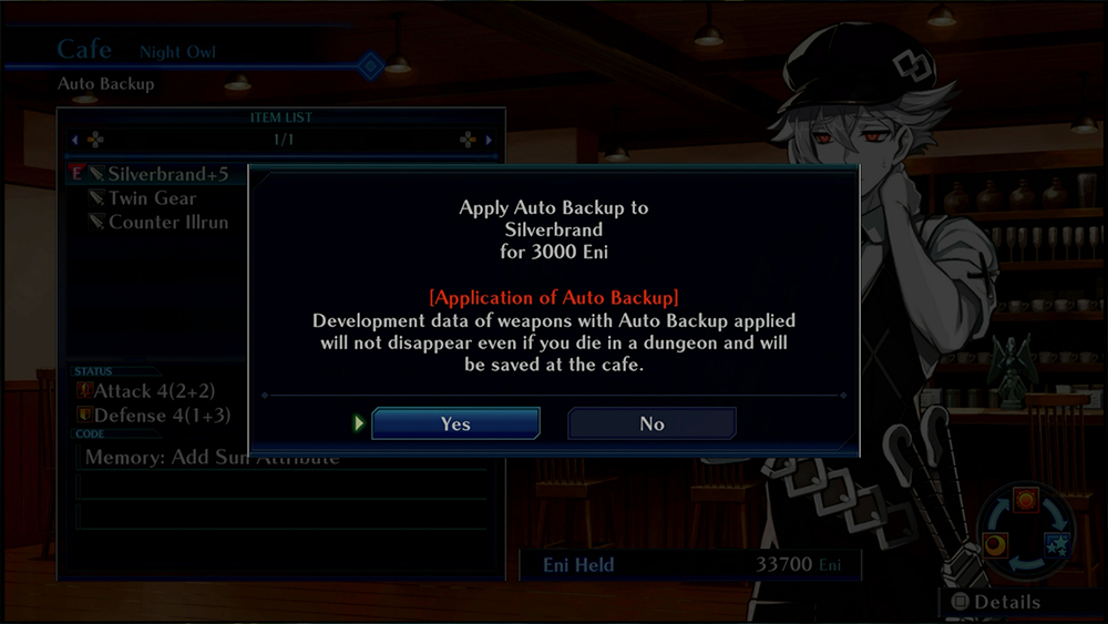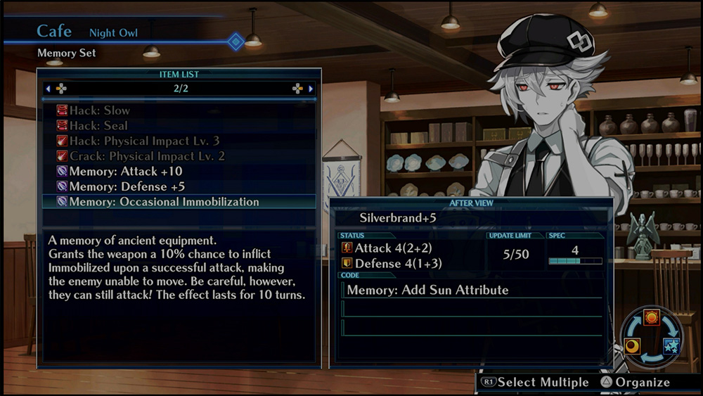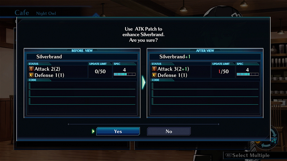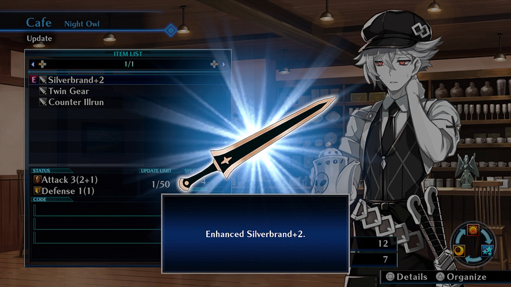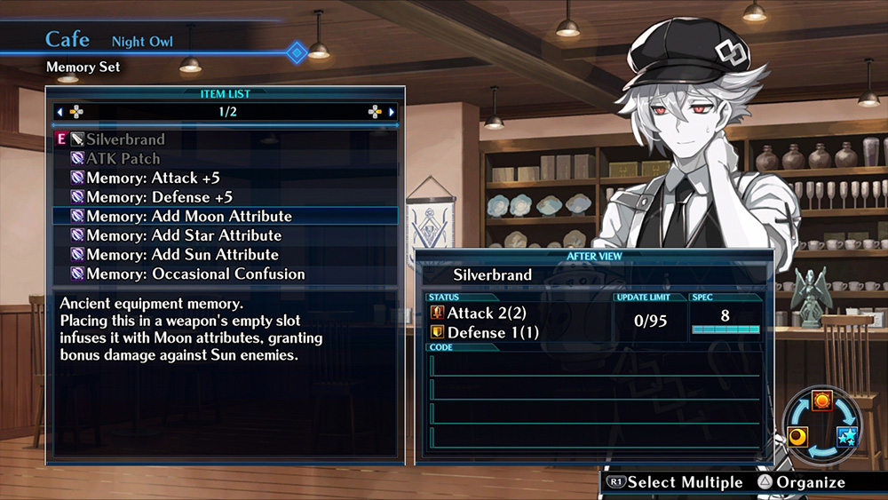 At Night Owl, the café managed by Levin, you can customize each of Sayaka's weapons.