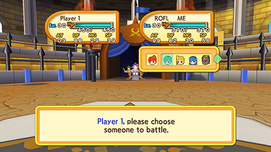 If you defeat another play in battle, you can play a "prank" on them! You can give them an embarrassing name, make them wear ugly wigs, or doodle on their faces! Let's prank each other!