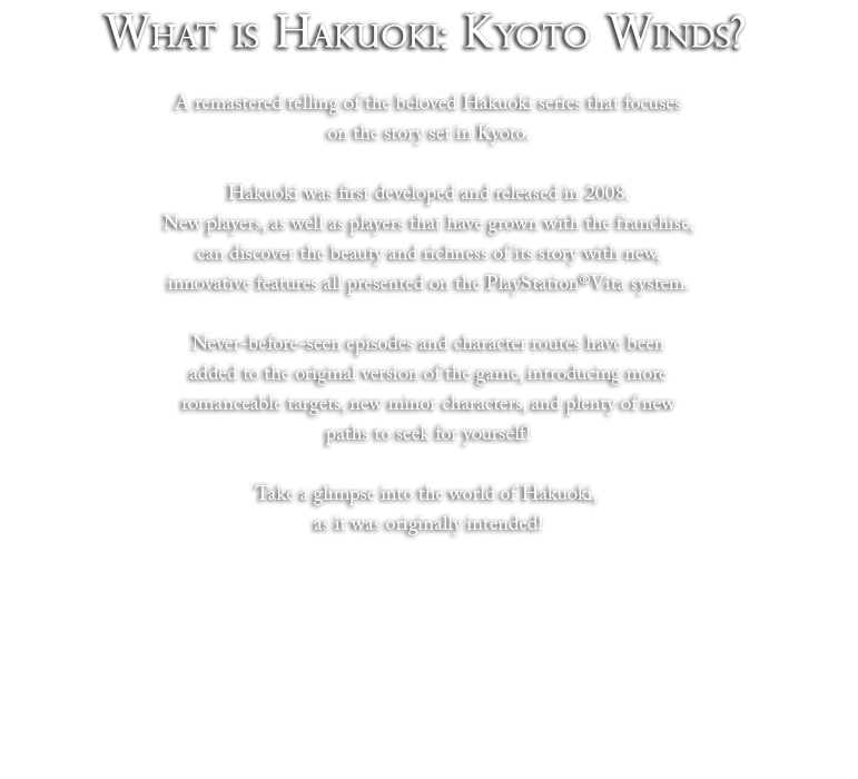 A remastered telling of the beloved Hakuoki series that focuses on the story set in Kyoto.