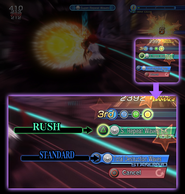 - An attack that sits between Rush and Power. It helps when you wish to raise your Hit count while also lowering the enemy's HP.