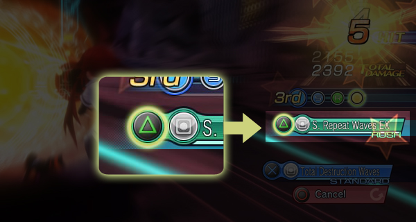 ▲When conditions are met and an attack's power has risen, the icon next to the attack's name will glow