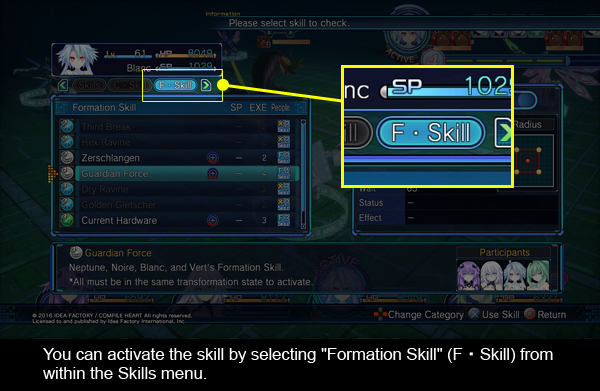 "Formation Skill" (F・Skill) within the Skills menu.