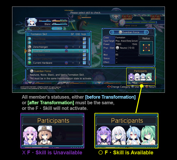 2:Make sure all members are in the same transformation state when attempting formation skills.