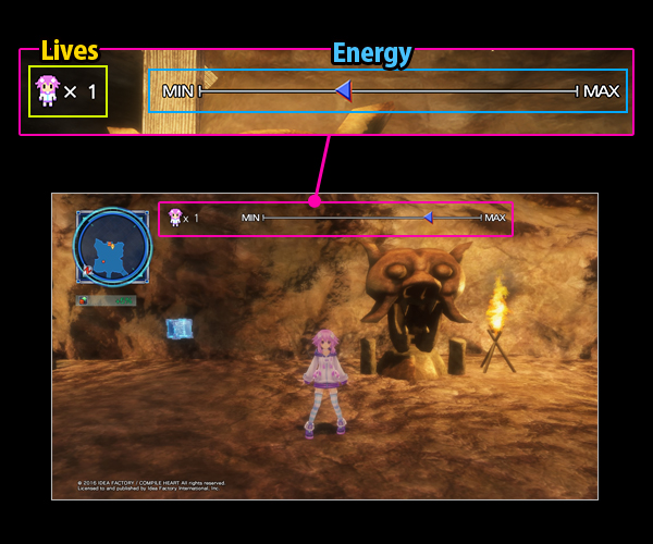 "Lives" and "Energy" are particular to this dungeon.
