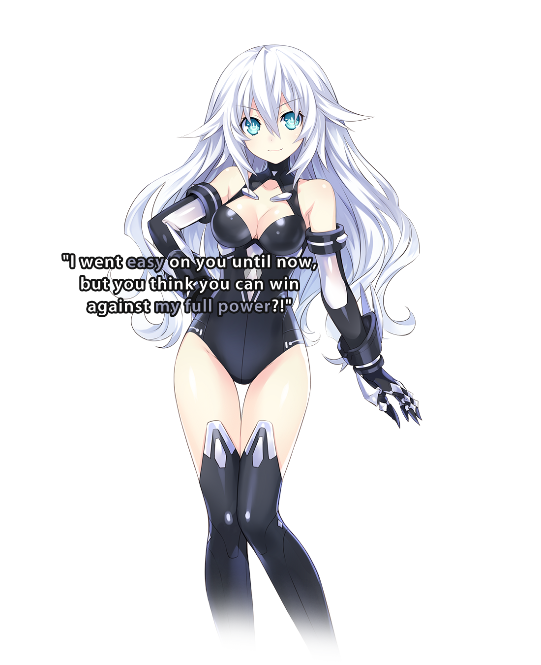 Noire's HDD form. Her personality transforms into one full of confidence and aggression in this form. Her habit of not being transparent with her feelings mostly disappears, although her pride and tsundere tendencies remain relatively unchanged.