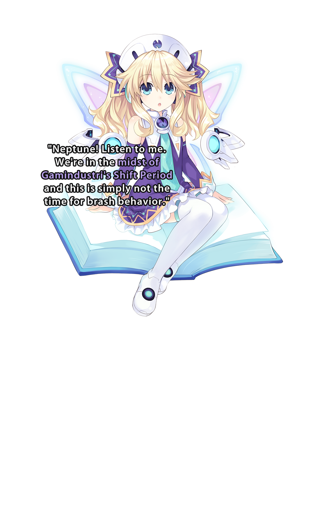 She is an artificial being created long ago by a former CPU of Planeptune. Her purpose is to record the nation's history. In the past, her role was confined to being the keeper of Planeptune's chronicle. However, ever since Neptune became the CPU, she became anxious for the nation's future and so, Histoire became an Oracle to manage the nation alongside its lazy ruler. She secretly places a large amount of trust in Neptune, who gets the job done when needed most, but Histoire will never vocalize it. She thinks Neptune would get carried away with such knowledge.