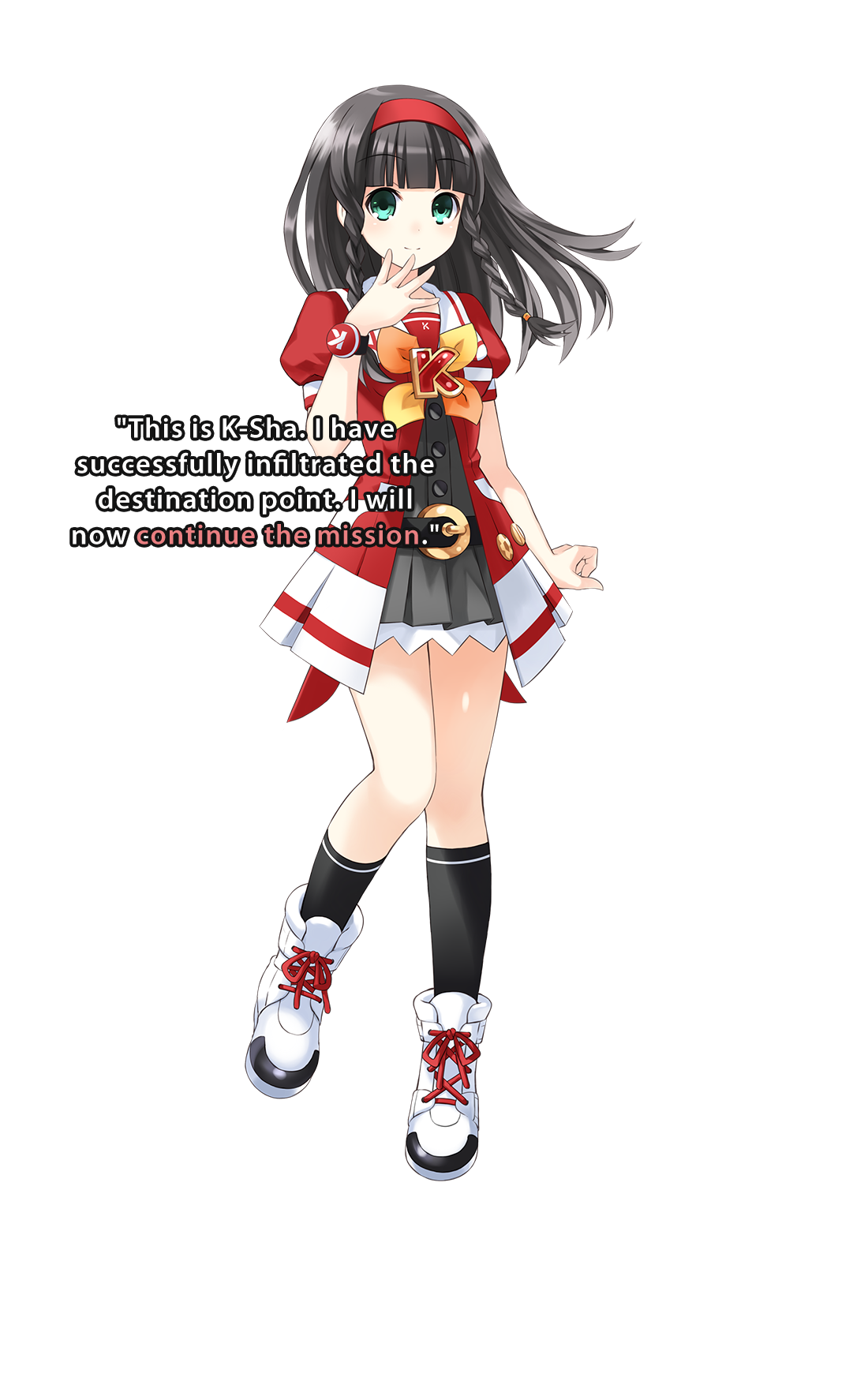 A student of the Lastation school for girls. She excels in both academics and sports, and rumor has it she is quite popular with the boys. Her hobbies are music appreciation and performance, and she's also skilled at rhythm games due to her quick reflexes. Whenever she picks up a gun, however, her personality changes to that of a military veteran. She is then able complete a mission without so much as wincing at the sight of a gruesome bloodbath.