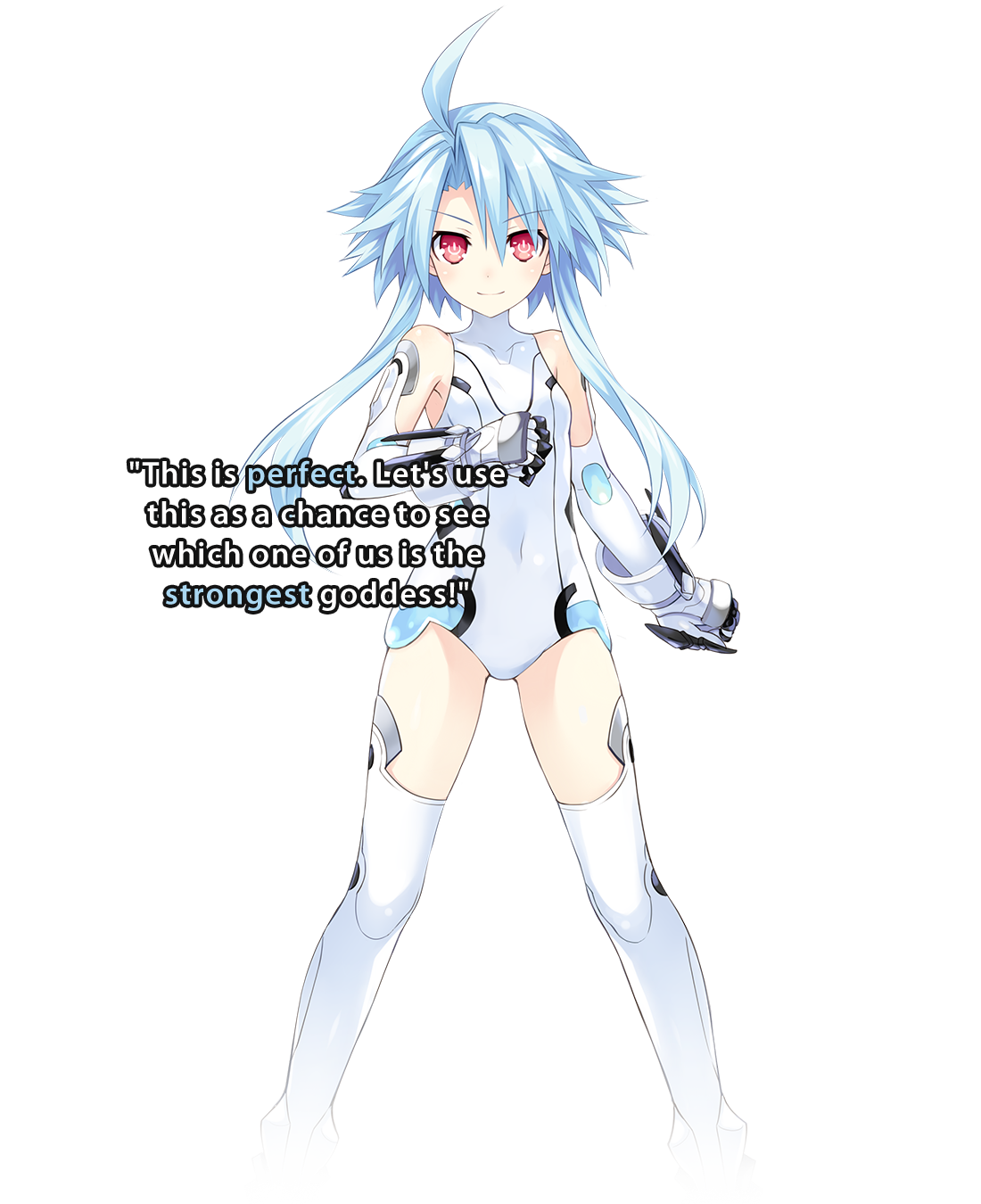 Blanc's HDD form. Her soft disposition disappears when transformed; her attitude and speech towards others becomes very brusque. Despite her small stature, she's incredibly talented in the art of hand-to-hand combat, but the fact that her body doesn't mature like the other CPUs bothers her immensely.
