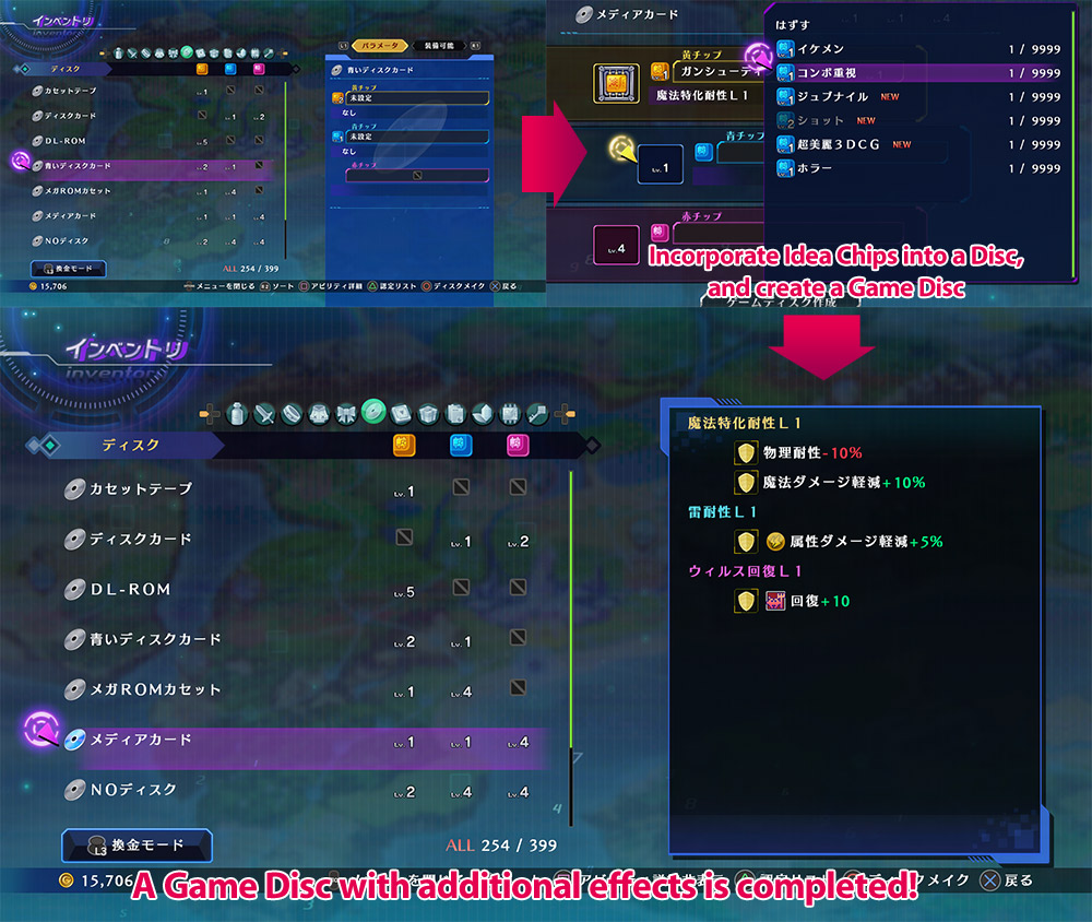 In Disc Dev, you can create your original "Game Disc" by incorporating "Idea Chips" into "Discs."