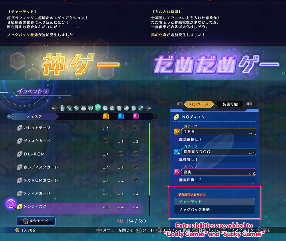 By combining certain Idea Chips together, you can create special Discs called "Godly Games" and "Sucky Games."