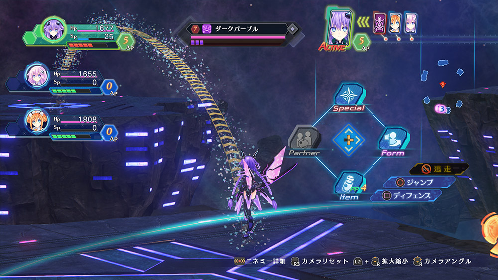 You can either break up your party members in order to avoid concentrated attacks from the Dark CPU, or move closer in order to heal others. An important point of Giant Boss Battles is to use jumping and movement effectively.