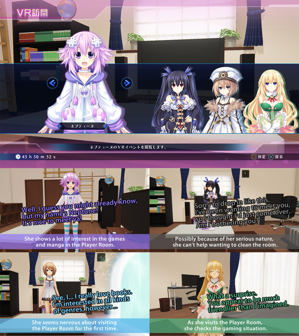 Within VR Visits, you can select events from the four Goddesses (Neptune, Noire, Blanc, and Vert).
