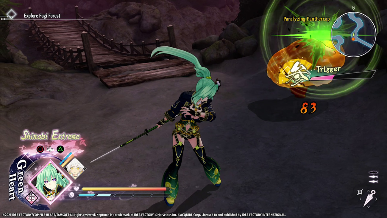 Your shuriken and kunai can be used as long-distance attacks during your combos in battle! Shuriken specialize in damage, and kunai specialize in inflicting status ailments. You can swap freely between the two!