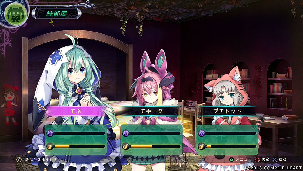 The Witches' Den is everyone's base, including the 3 little sisters who wait for the protagonists to return. The little sisters also carry the witches' curse and will go mad unless they drink dragon blood. You will have to give them dragon meat or blood you've obtained during your exploration. Each sister has a satisfaction meter, and if you give them meat or blood, it will increase. Once the Satisfaction Meter reaches a certain threshold, the sisters will give you rare items so be sure to give the sisters meat and blood from time to time.