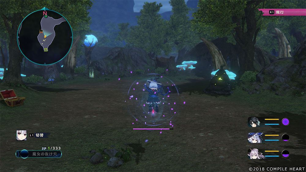 There are various gimmicks in dungeons such as treasure chests, harvest points, obstacles, and lurking enemies. You can use your weapon to destroy objects and you can unleash symbol attacks onto enemies. You can also get on your broom and fly!