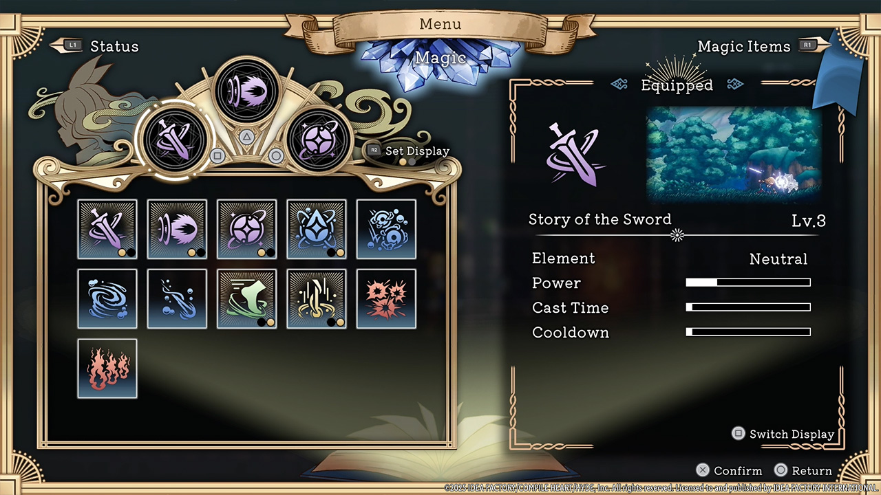 The element is also granted to the normally Neutral "Story of the Sword" spell, making an Elemental Burst possible with it. The charge attack's motion differs depending on the element, allowing you to unleash a powerful strike.