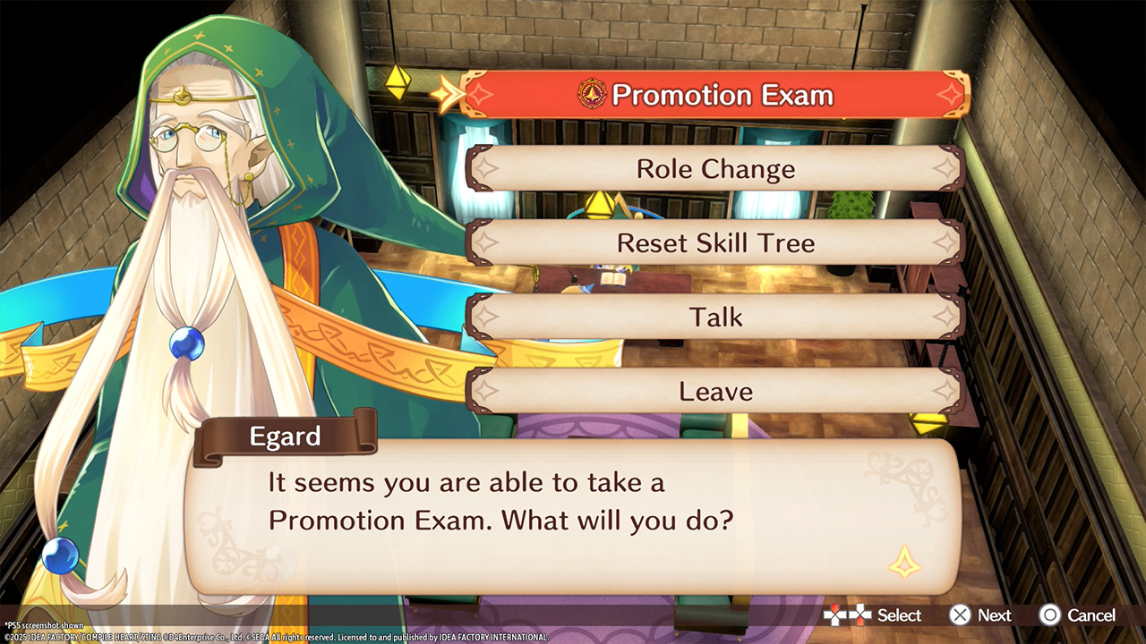 Once you've gained enough Credits to be promoted, you can take the Promotion Exam from the Principal's Office!